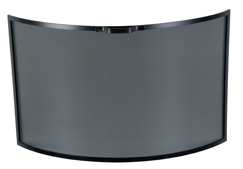 Gnistfanger for grue eller åpen murt peis. Vår største buede gnistfanger, 90 cm bred. 45 cm høy. Glatt jern, uten ornamenter, antrasittfarget og med kofferthåndtak.