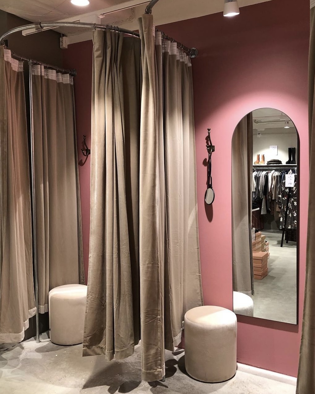 Alle prøverom produseres nøyaktig etter dine mål, og prisen varierer basert på størrelse og antall. Skap et stilig og funksjonelt prøverom med RK-smias halvsirkelløsning.